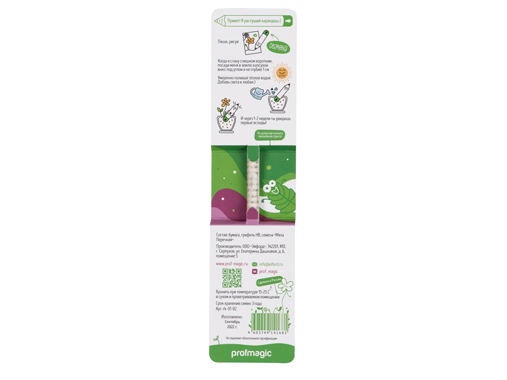 | Комплектность | карандаш из бумаги, семена Мята Перечная |
