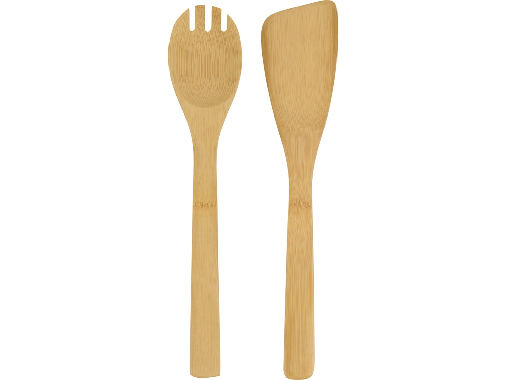 Бамбуковая доска с кухонными принадлежностями - отличный подарок для любителя готовки и кулинарии. В комплекте скошенная лопатка и ложка с функцией вилки. На доске имеется прорезь для подвешивания доски.