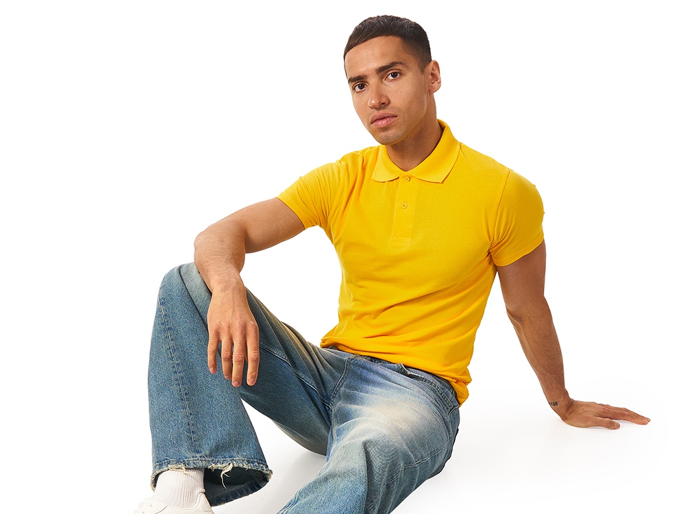 Рубашка поло First мужская, золотисто-желтый купить оптом и в розницу с нанесением логотипа в Санкт-Петербурге