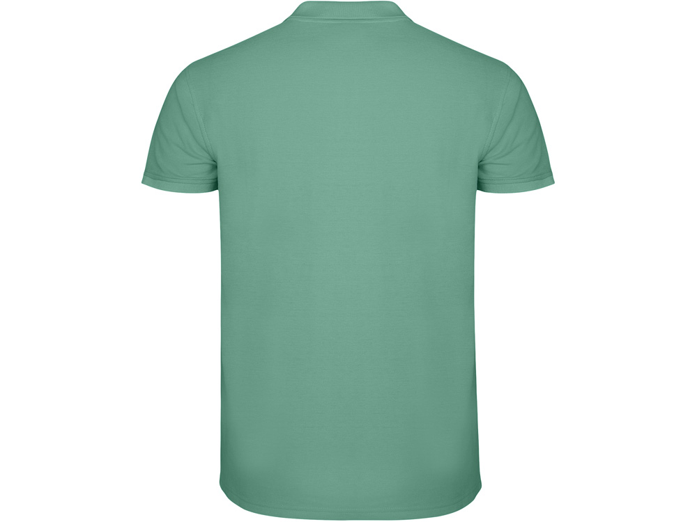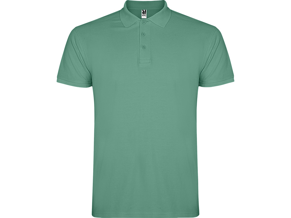 Поло с коротким рукавом, воротник и манжеты из риба 1х1, отделка горловины внутри тесьмой. Планка застегивается на 3 пуговицы. Разрезы в боковых швах. В ассортименте также представлены аналогичная женская модель Star.