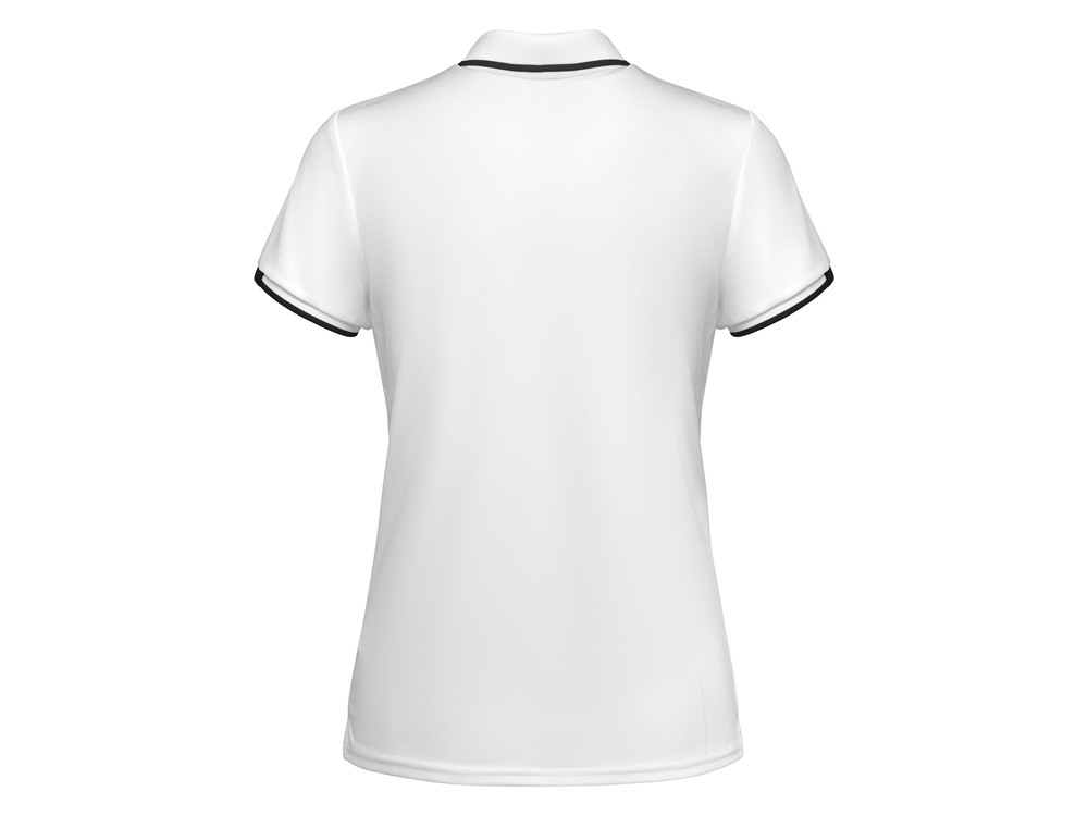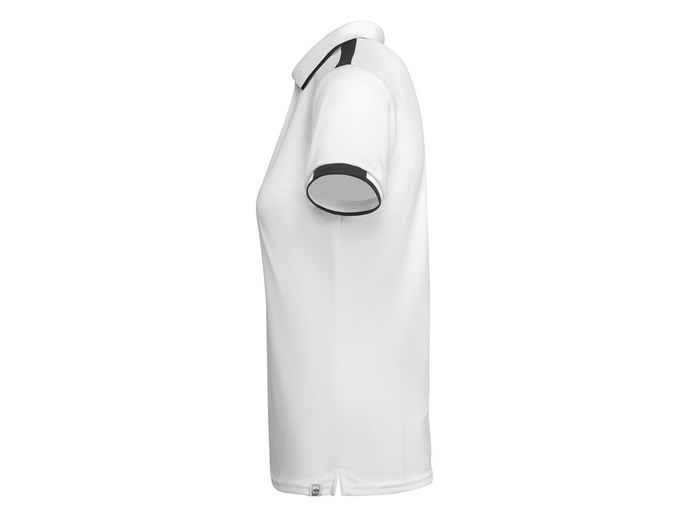 Приталенная женская спортивная рубашка поло с коротким рукавом из антибактериального переработанного полиэстера. Воротник и манжеты из риба 1x1. Усиленные закрытые швы в воротнике. Планка с 2 пуговицами и скрытой нижней пуговицей. Контрастные детали и плечи. Боковые разрезы в швах.