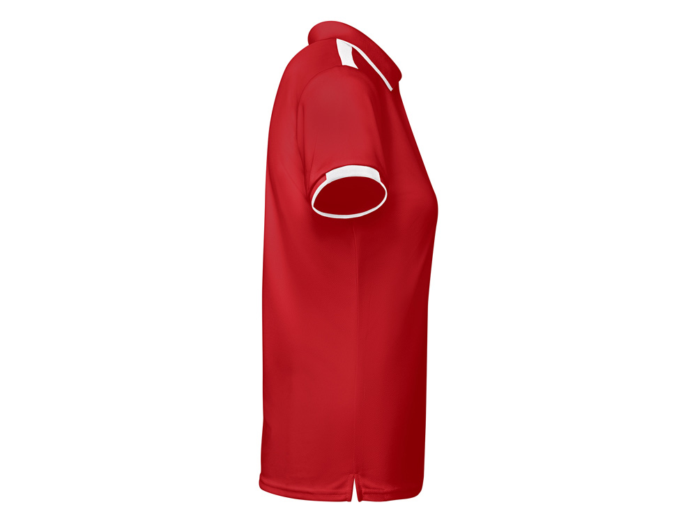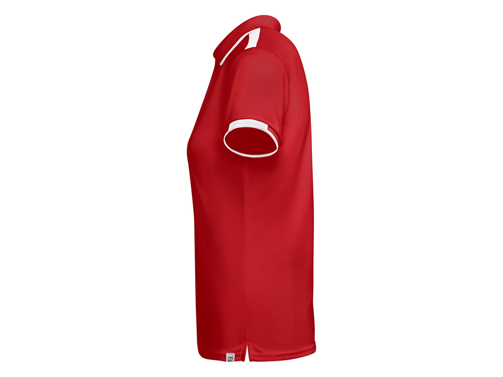 Приталенная женская спортивная рубашка поло с коротким рукавом из антибактериального переработанного полиэстера. Воротник и манжеты из риба 1x1. Усиленные закрытые швы в воротнике. Планка с 2 пуговицами и скрытой нижней пуговицей. Контрастные детали и плечи. Боковые разрезы в швах.