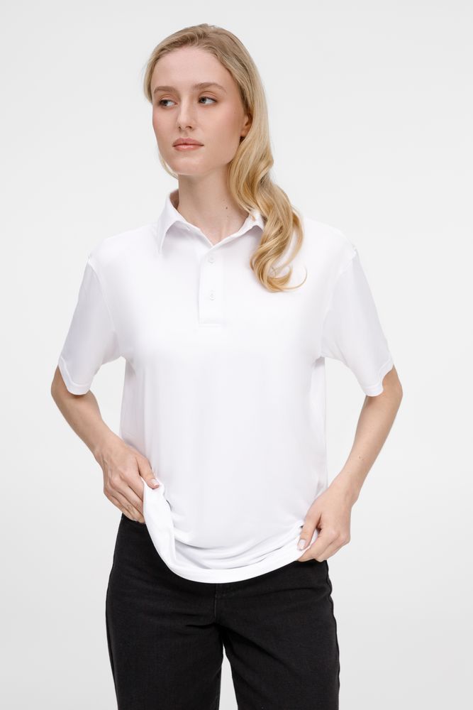 Рубашка поло унисекс Senti, белая купить оптом и в розницу с нанесением логотипа в Санкт-Петербурге