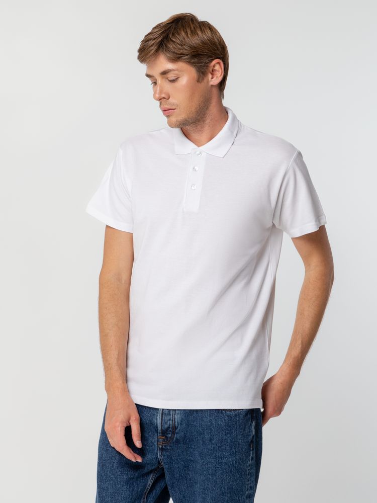 Рубашка поло мужская Spring 210, белая купить оптом и в розницу с нанесением логотипа в Санкт-Петербурге
