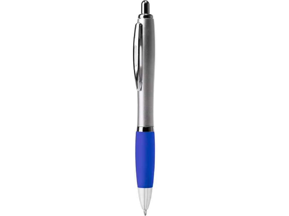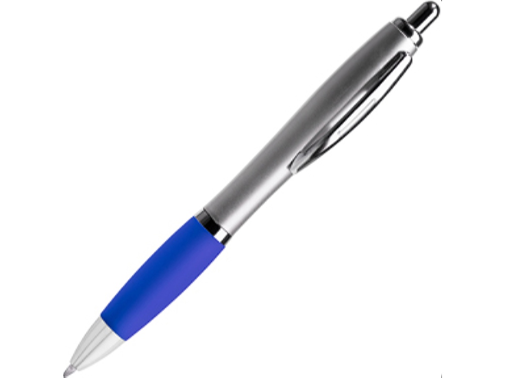 Шариковая ручка с серебристым корпусом из АБС-пластика и полупрозрачным мягким грипом