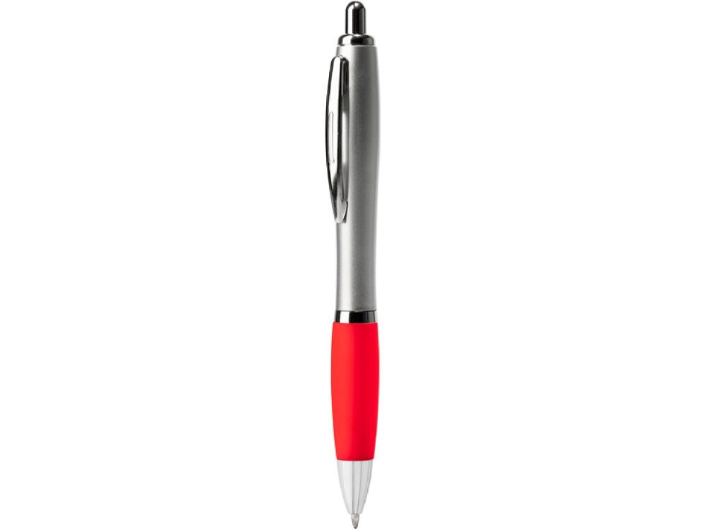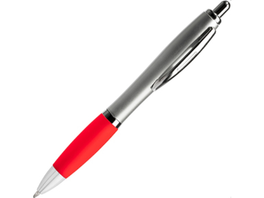 Шариковая ручка с серебристым корпусом из АБС-пластика и полупрозрачным мягким грипом