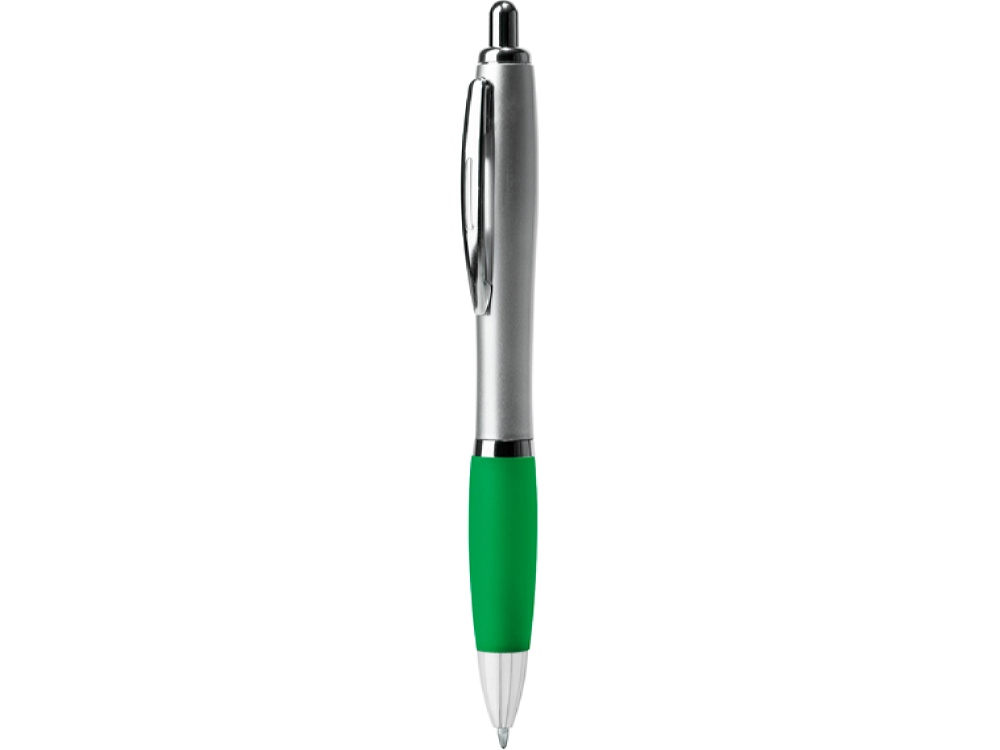 Шариковая ручка с серебристым корпусом из АБС-пластика и полупрозрачным мягким грипом