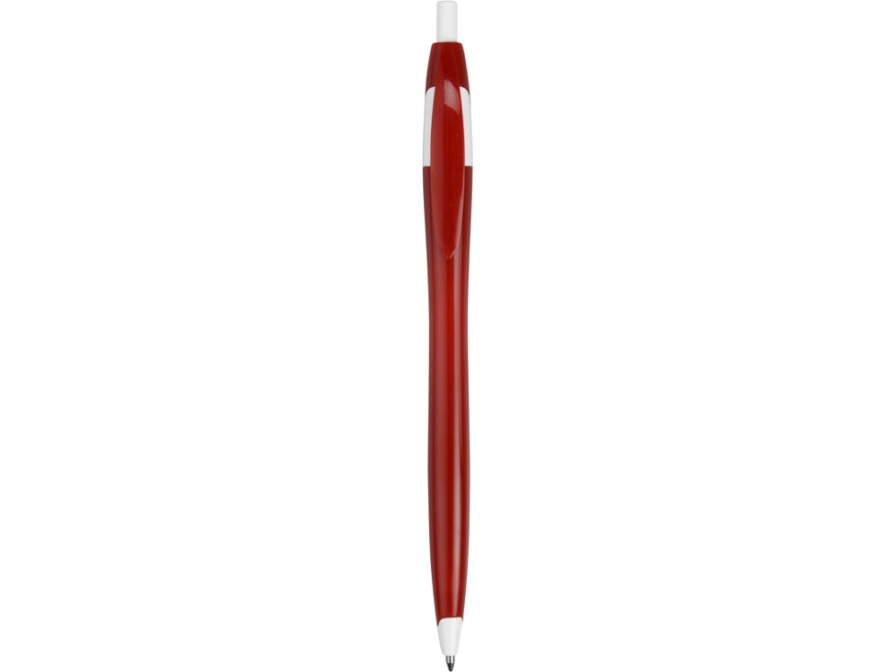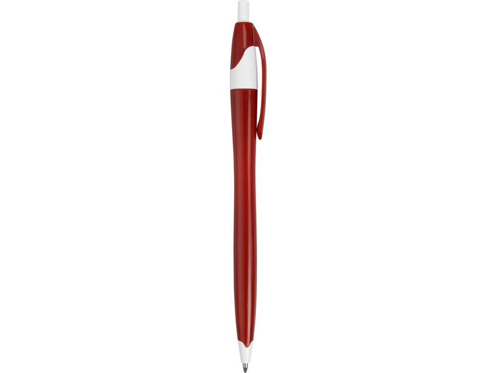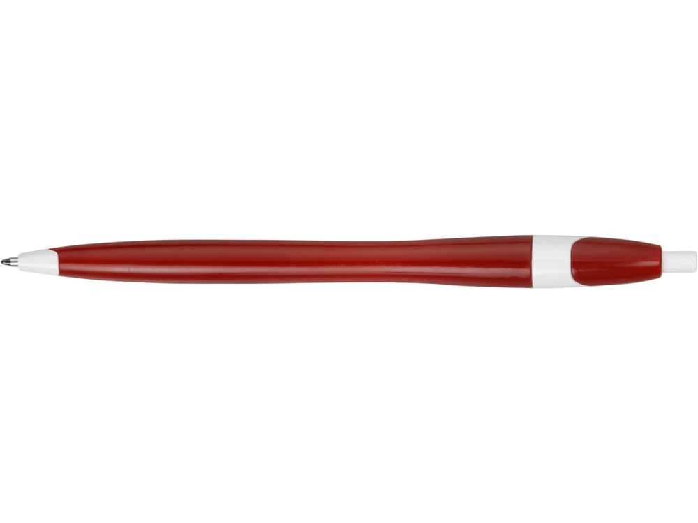 Простая, но стильная пластиковая ручка с цветным корпусом и белыми вставками на носике, кнопке и под клипом. Белые вставки делают ручку более заметной, не отвлекая от рекламной информации на ее корпусе.
