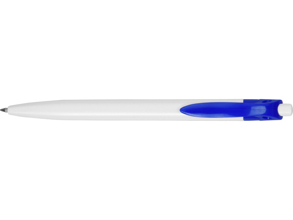 Стильная пластиковая ручка с ярким цветным клипом и белым корпусом отлично подойдет для нанесения логотипов и рекламной информации. Нажимной механизм.