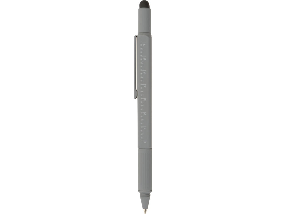 Четырехгранная металлическая ручка в одном корпусе сочетает несколько полезных функций: • Стилус для работы с устройствами с сенсорными экранами. • Под стилусом располагаются крестовая и шлицевая отвертки. • В металлический корпус встроен уровень, на корпусе линейка. • Стальной клип будет держать ручку надежно в кармане. • Возможность нанесения логотипа сразу на несколько граней ручки.