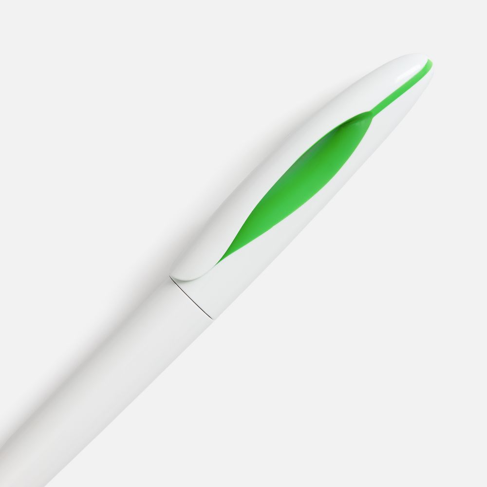 Ручка шариковая Nave, белая с зеленым купить оптом и в розницу с нанесением логотипа в Санкт-Петербурге