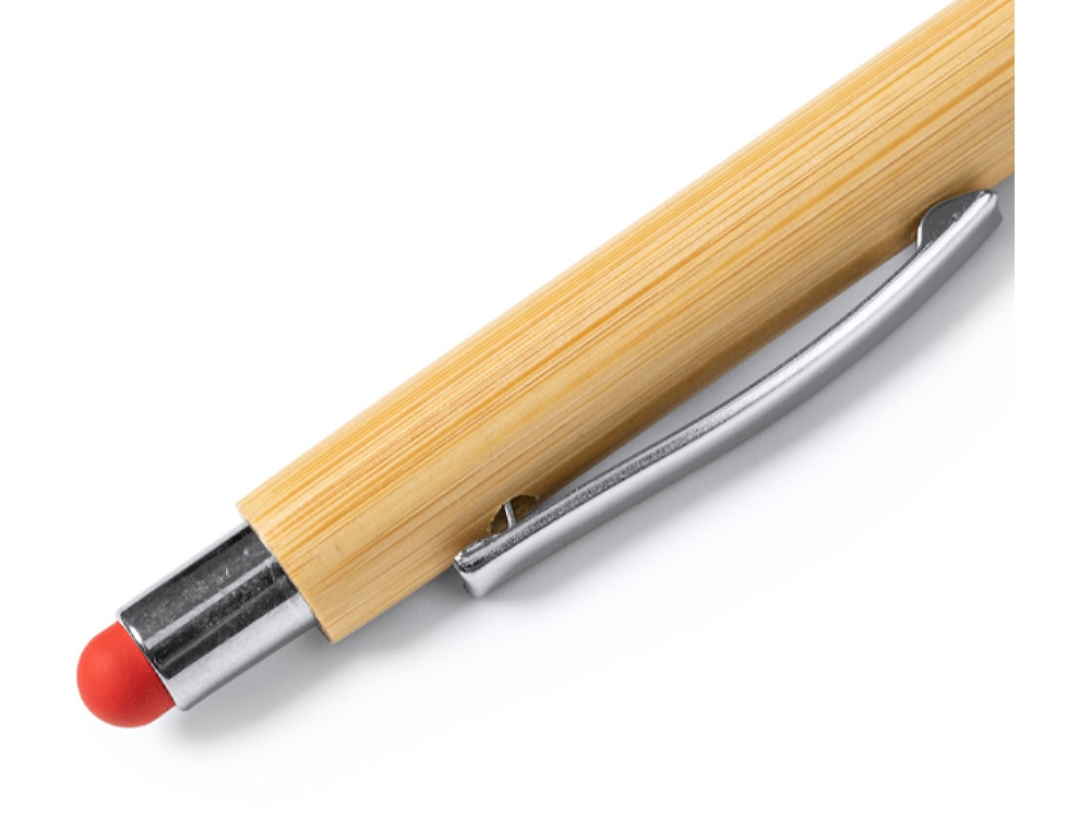 Ручка шариковая PAMPA с цветным стилусом, натуральный/красный купить оптом и в розницу с нанесением логотипа в Санкт-Петербурге