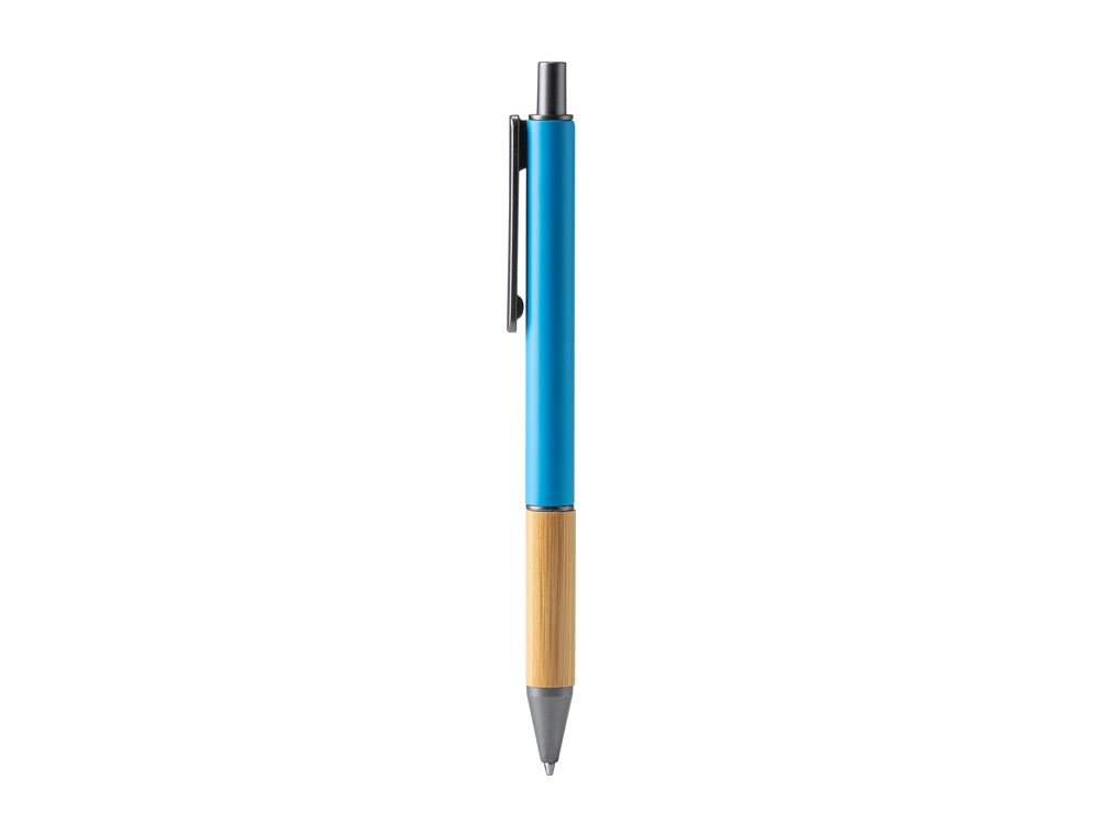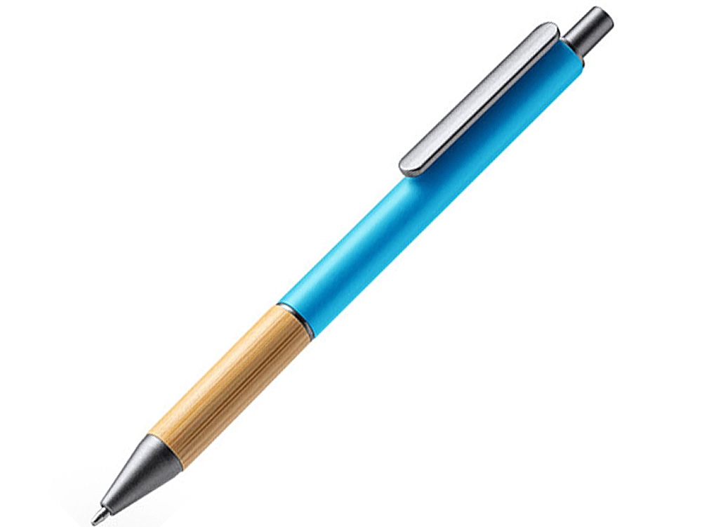 Металлическая шариковая ручка с матовым покрытием, бамбуковой вставкой и деталями темного цвета.