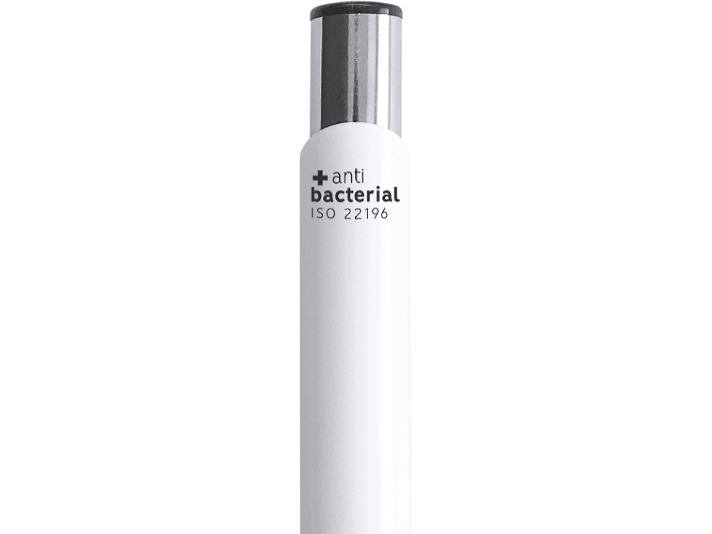 Шариковая ручка со стилусом, антибактериальным корпусом и металлическим зажимом. Предотвращает и подавляет рост бактерий на корпусе ручки. Толщина стержня 1 мм. Синие чернила