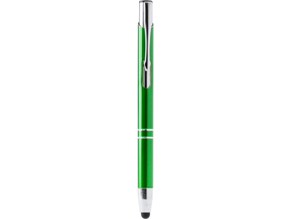 Шариковая ручка с алюминиевым корпусом и кнопкой с анодированным покрытием. Сенсорный стилус. Синие чернила.