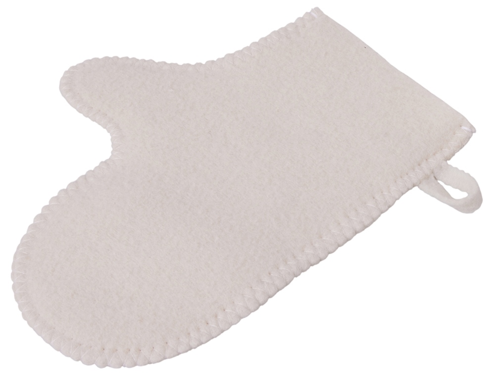 Рукавица для бани и сауны сохранит руки от ожогов при касании печной заслонки или горячего ковша, а также от мозолей при использовании веника. Войлок обладает высокими термоизоляционными свойствами и хорошо впитывает влагу, поэтому наилучшим образом подходит для изготовления банных аксессуаров. • Защищает от ожогов и мозолей • Хорошо впитывает влагу • Быстро сохнет Рекомендуется ручная стирка при 30°C с использованием специальных средств для шерсти или мягкого мыла.
