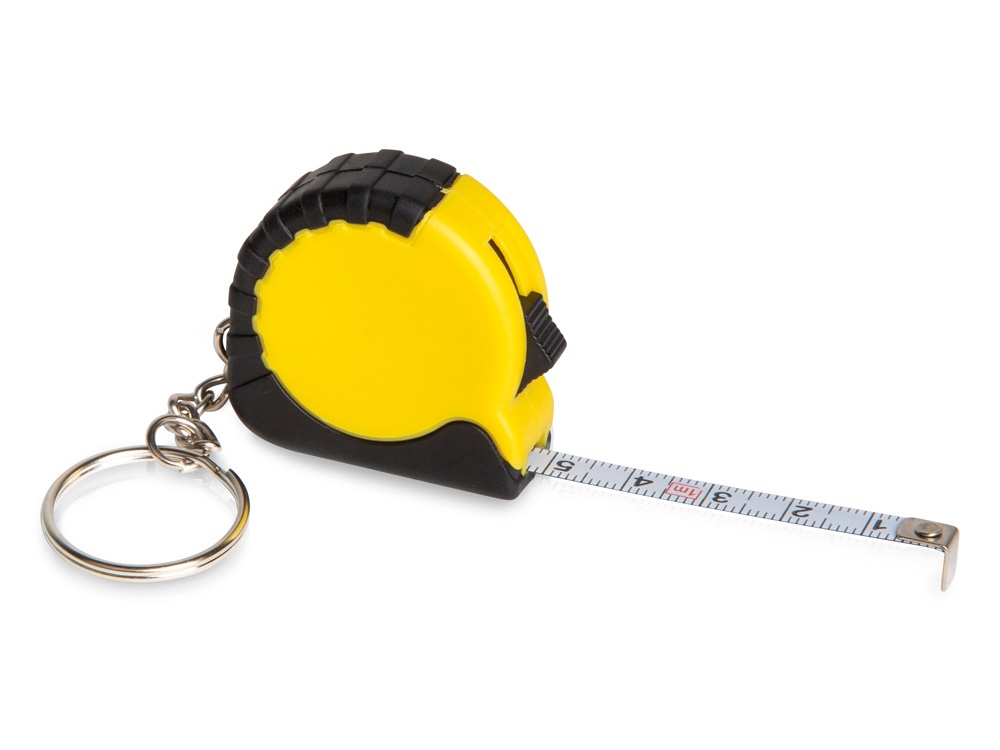 Рулетка длиной 1 м с возвратной пружиной и стопором со шкалой в сантиметрах и дюймах. Кнопка для фиксации ленты.