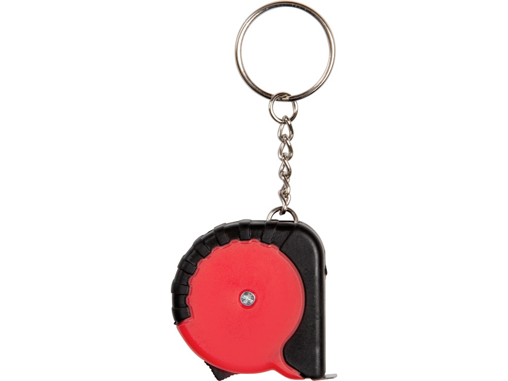 Рулетка длиной 1 м с возвратной пружиной и стопором со шкалой в сантиметрах и дюймах. Кнопка для фиксации ленты.