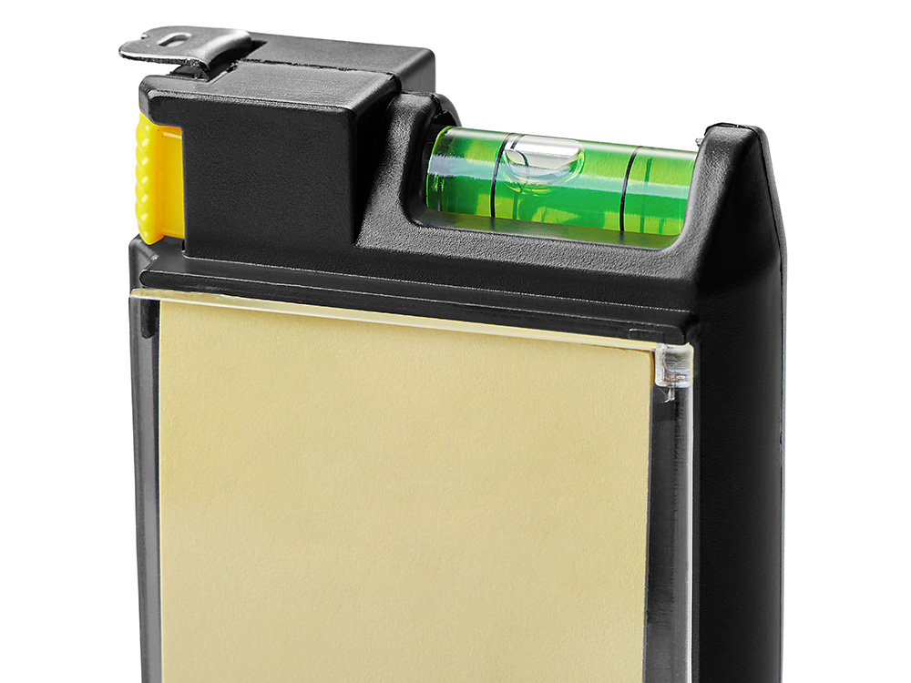 Компактная рулетка на 2 м с полезными функциями: - Блокнот и ручка для записей - Уровень - Клип для крепления к ремню