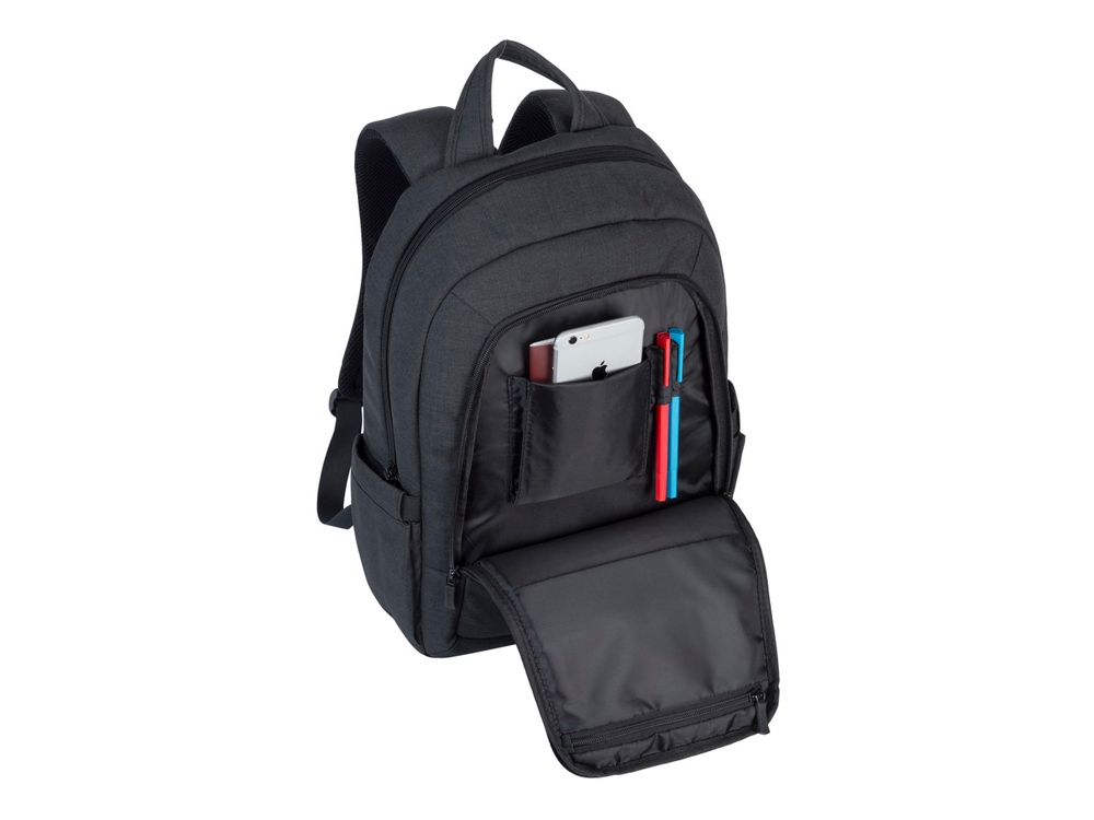 Рюкзак для ноутбука до 15.6''. • Стильный городской рюкзак из высококачественной водоотталкивающей ткани. • Легкий (всего 495 г), но имеет утолщенные стенки для защиты ноутбука от случайных ударов и царапин, а также от пыли и влаги. • Основное отделение для ноутбука с вертикальной загрузкой, имеет мягкие стенки и ремень для надежной фиксации ноутбука до 15.6. • Дополнительное внутреннее отделение для планшета до 10.1. • Внешний передний карман на молнии для хранения аксессуаров, также оборудован панелью-органайзером для хранения визитных карт, флэш-накопителей, смартфона. • Два боковых кармана для ёмкостей с водой. • Двойная застежка молния для удобного доступа к устройству. • Удобная мягкая ручка для переноски и наплечные ремни со смягчающими подкладками помогут чувствовать себя комфортно в самом долгом путешествии. • Специальная система крепления ремешков на липучке.
