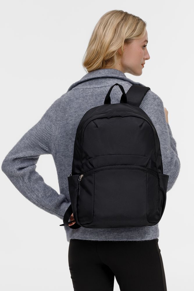 Спинка с мягким наполнителем равномерно распределяет нагрузку, а регулируемые плечевые ремни позволяют настроить их длину под себя. Расположение молнии полукругом позволяет полностью раскрыть основное отделение, что значительно упрощает процесс упаковки и извлечения вещей.