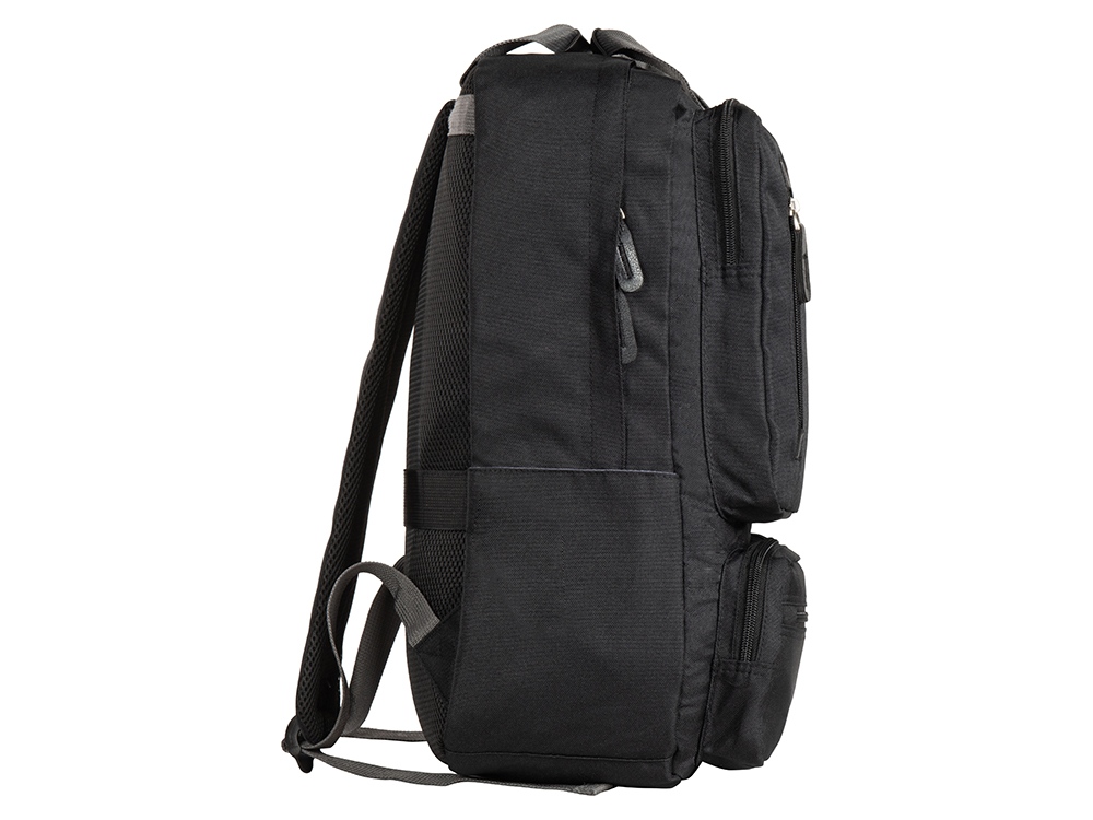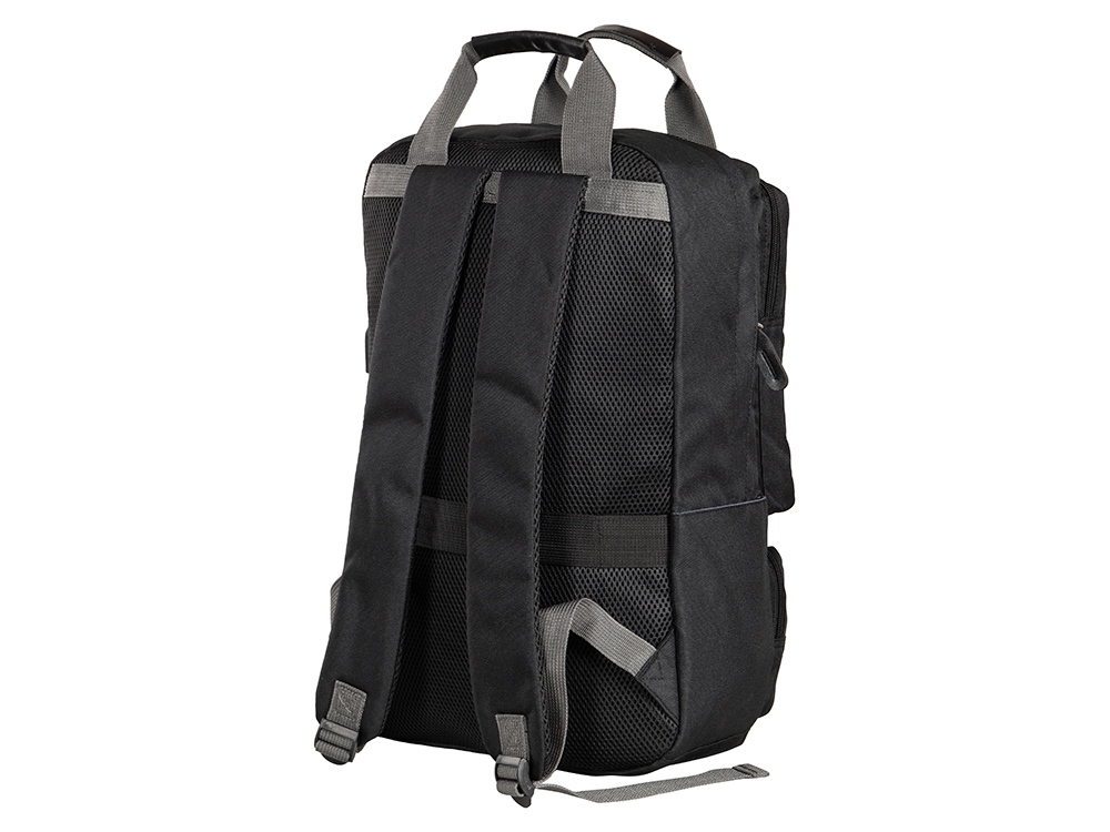 Рюкзак, в котором можно разместить все необходимое: - 2 наружных отделения на молнии, каждое из которых имеет карман на молнии, - 2 боковых кармана, - внутри органайзер, - отделение для ноутбука, - USB разъем, - сетчатая спинка, - 2 ручки вверху для большего удобства, - карабин для ключей внутри, - отделка из искусственной кожи на наружном кармане и на бегунках