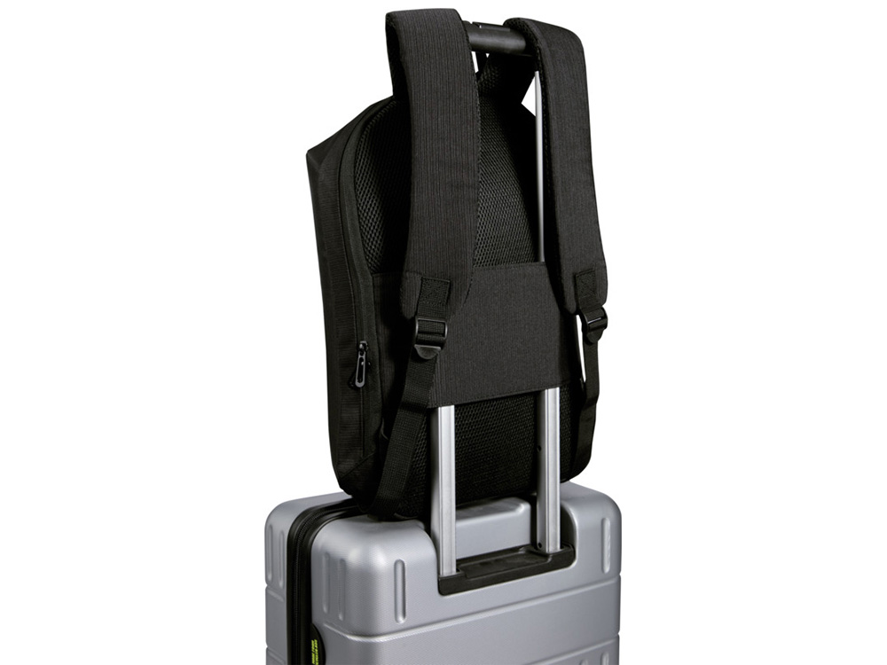 Рюкзак Luma для ноутбука 15 дюймов с защитой от кражи, изготовленный из переработанного жаккардового полиэстера с подкладкой из переработанного ПЭТ-пластика в тон, сочетает в себе умную защиту и элегантный стиль для тех, кто всегда в движении. Функции защиты от кражи включают запирающиеся молнии (замок не входит в комплект) и скрытый задний карман, который также можно использовать как ручку для крепления к чемодану. Ткань водоотталкивающая, что защитит ваши вещи от небольшого дождя. Внутри вы найдете отделение для ноутбука с диагональю экрана до 15 дюймов, имеющее мягкую подкладку для устройств, специальный карман для планшета, органайзер для ручек и организованное хранилище для аккуратного хранения самых необходимых вещей. Конструкция также включает мягкие плечевые ремни, дышащую сетчатую спинку и металлические пластины спереди. Независимо от того, едете ли вы на велосипеде на работу, проезжаете через оживленный аэропорт или направляетесь на учебу, рюкзак Luma обеспечит вам комфорт и стиль на весь день. Полиэстер из переработки, сертифицированный GRS.