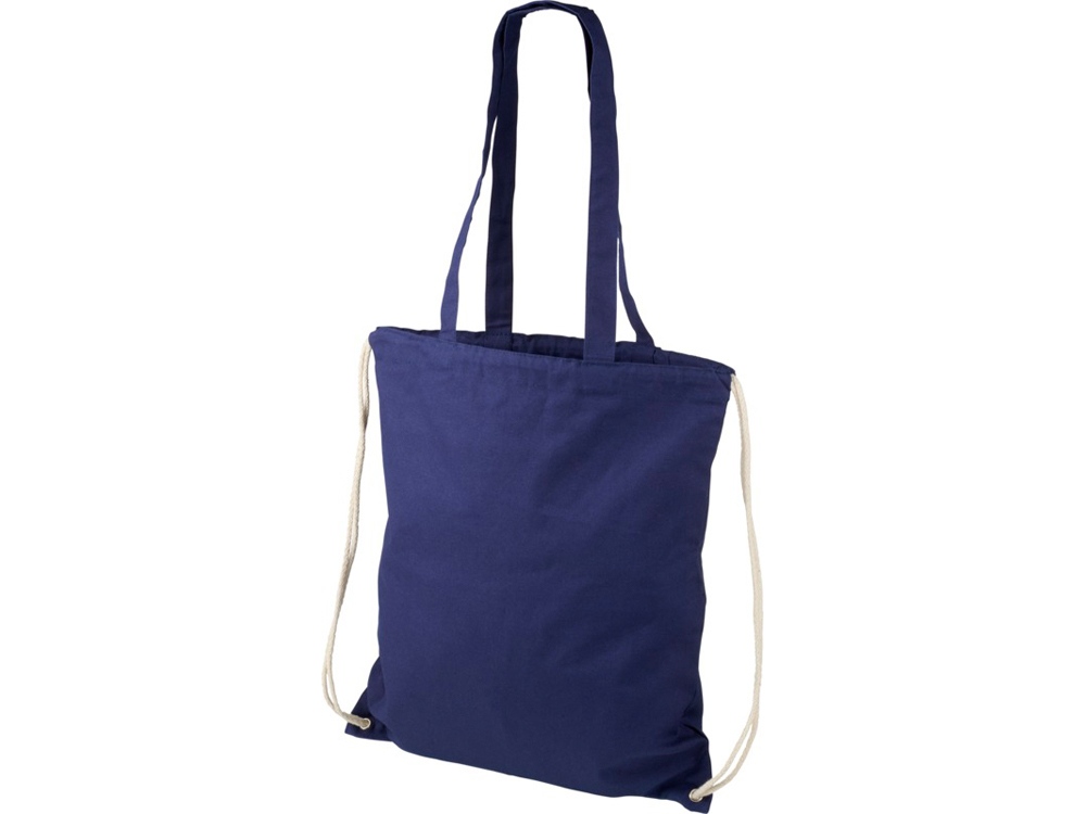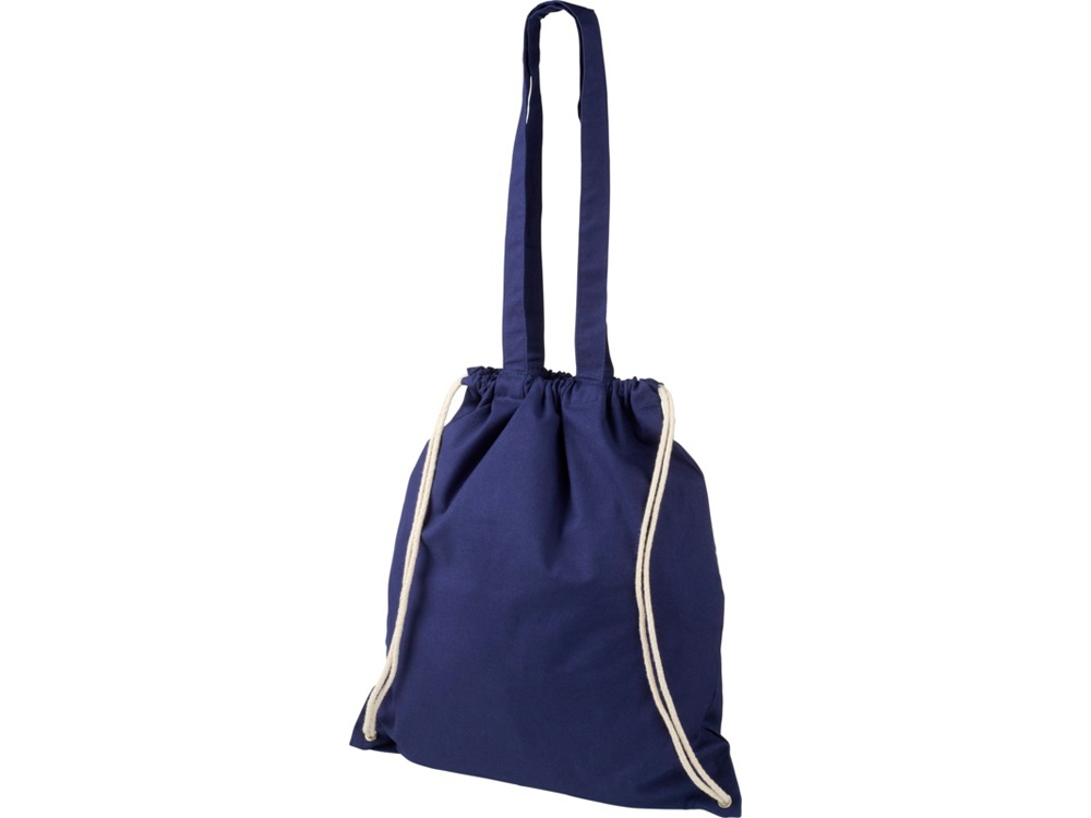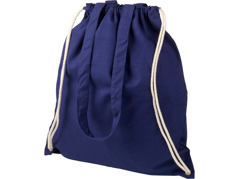 Многофункциональный хлопчатобумажный мешок с длинными ручками и затягивающим шнурком, который можно носить в качестве сумки для покупок или рюкзака. Большой основной отсек, закрывающийся затяжкой шнурка. Имеет две выпадающие ручки длиной 31 см. Вместимость: 16 л, выдерживает до 5 кг веса. Хлопок, 240 g/m2.