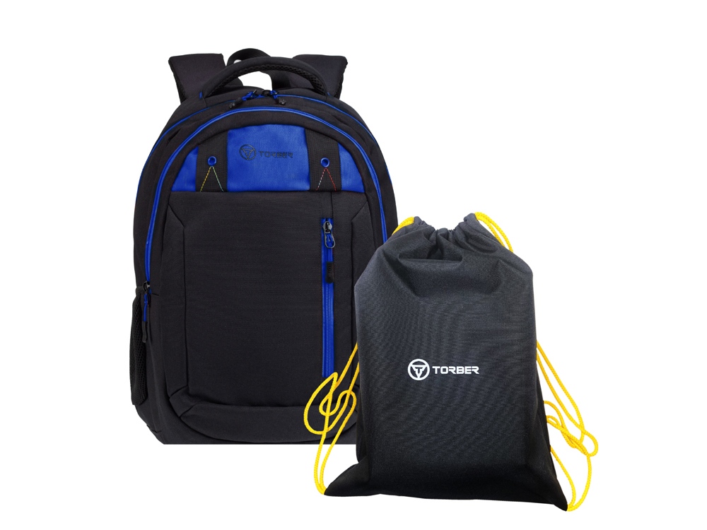 Рюкзак TORBER школьный серии CLASS X Функциональные особенности: Регулируемые продуваемые плечевые ремни Карман для бутылки Карман для зонтика Карман для планшета Мягкая спинка с продуваемыми воздушными каналами Вмещает ноутбук диагональю 15,6 Количество отделений - 2 Количество карманов - 5 шт: 1 - для ноутбука в основном отделении, 1 - для ключей и небольших аксессуаров на молнии в основном отделении, 1 - на молнии на внешней стороне рюкзака, 2 - боковых для зонтика/бутылки Материал: полиэстер 900D Размер: 45 x 32 x 16 см Объем: 17 л