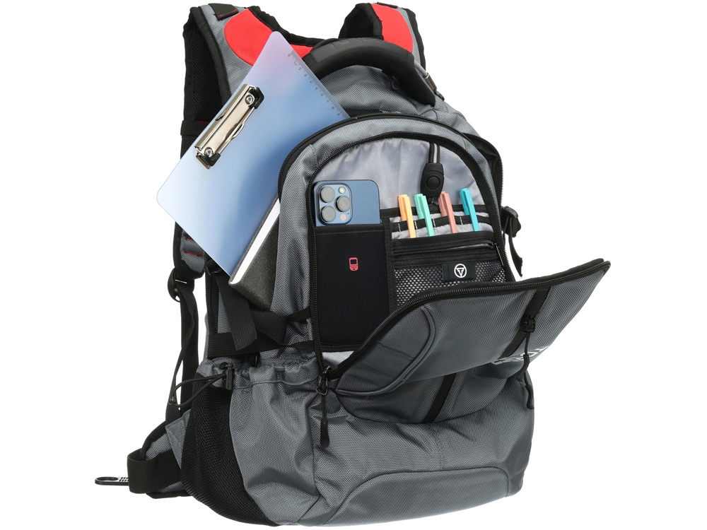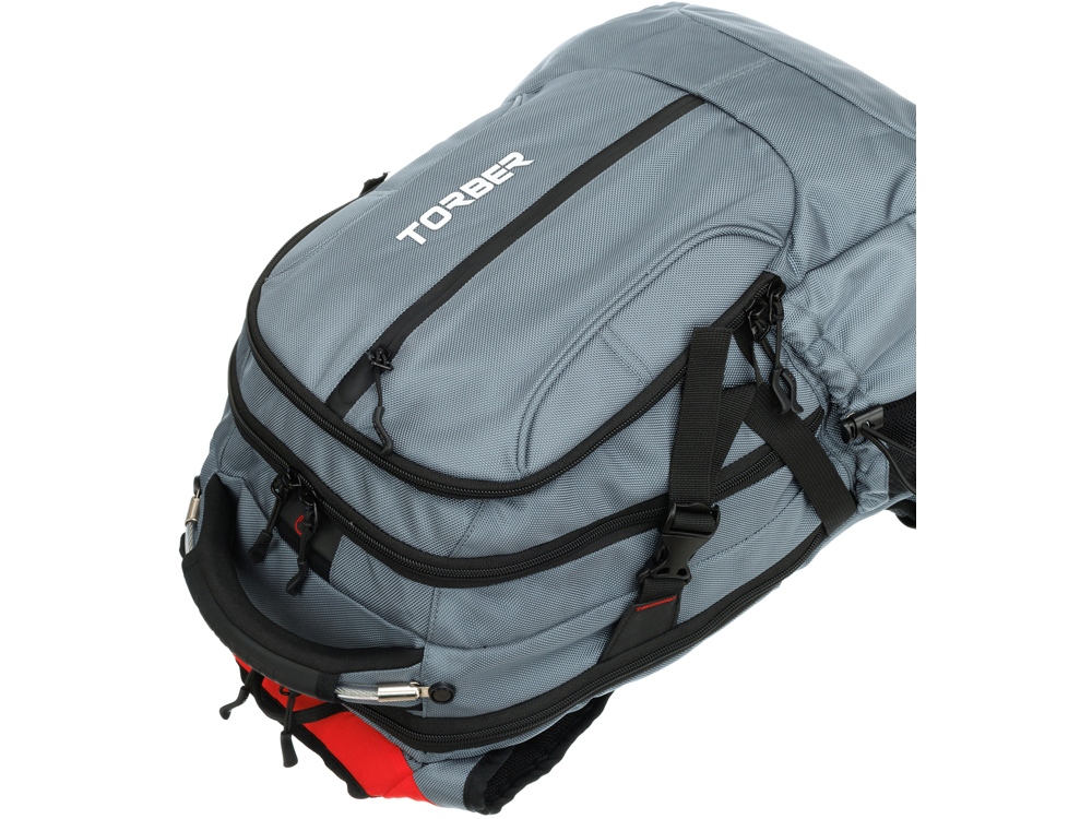 Рюкзак TORBER Drive – это идеальное решение для активного человека. Этот рюкзак оборудован специальным отделением для вашего ноутбука с диагональю экрана 15. Мягкая подкладка надежно защитит ноутбук при переноске. Рюкзак имеет отделение для телефона или зарядного устройства с отверстием для выхода проводов, благодаря которому можно заряжать телефон, не доставая зарядное устройство из рюкзака. Благодаря боковым карманам, вы можете носить с собой бутылку с водой или зонт. Спинка и ремни оборудованы системой циркуляции воздуха. Карман-органайзер и кольцо для ключей позволят вам упорядоченно хранить большое количество мелких вещей. Усиленная эргономичная ручка с металлическим тросом позволяет носить рюкзак не только на спине, но и в руках, когда это необходимо. Поясной ремень для поддержания рюкзака сделает ношение рюкзака еще более удобным. Рюкзак выполнен в сером цвете с красной отделкой, что делает его универсальным и стильным. Объём 30 л позволяет вместить всё необходимое. Функциональная организация: - Отделение подходит для большинства ноутбуков с диагональю экрана до 15'' - Карман с мягкими стенками обеспечивает безопасную и удобную переноску планшетного компьютера или электронной книги - Отверстие для вывода гарнитуры, наушников или зарядного провода в верхней части рюкзака - Карман-органайзер включает ключницу и многочисленные кармашки для пишущих принадлежностей, мобильного телефона, документов и других мелких аксессуаров. - Эргономичные регулируемые плечевые ремни анатомической формы, оснащённые пропускающей воздух набивной подкладкой, обеспечивают максимальное удобство в использовании рюкзака - Спинка рюкзака с системой циркуляции воздуха имеет специальную рельефную поверхность, обеспечивает удобное прилегание к спине и вентиляцию - Прочная ручка с металлическим тросом в основании - Стягивающие ремни позволяют регулировать объём рюкзака, а также ужимать багаж для более удобной транспортировки