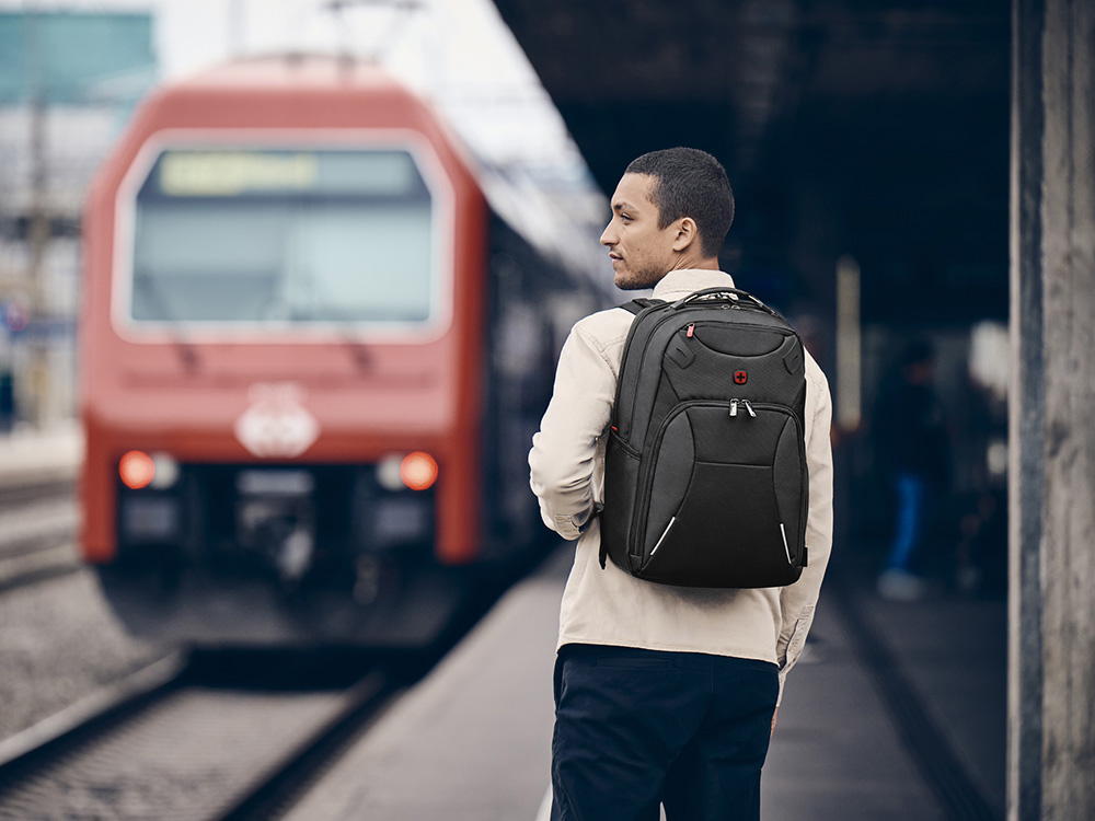 Рюкзак WENGER Cosmic 17, чёрный, переработанный ПЭТ/ПВХ/полиэстер, 34 x 23 x 49 см, 30 л купить оптом и в розницу с нанесением логотипа в Санкт-Петербурге