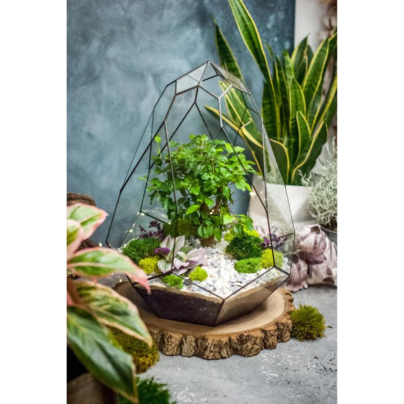 • Волшебный уголок, заключенный в прозрачных стенах, где природа и спокойствие сочетаются в идеальной гармонии. Этот флорариум — не просто украшение для интерьера, а настоящее убежище для души.