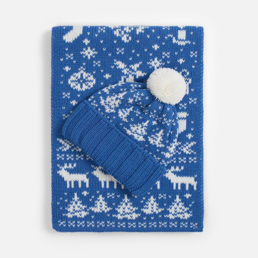 Шапка Holidale, синяя с молочным купить оптом и в розницу с нанесением логотипа в Санкт-Петербурге