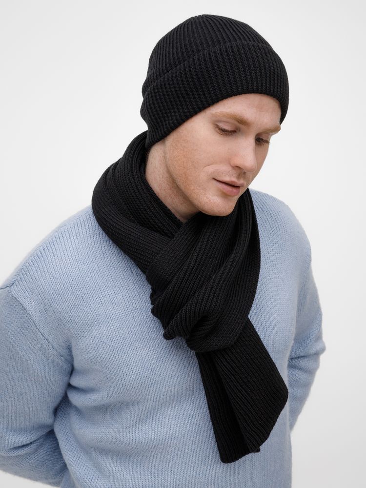 Удлиненный силуэт шапки Nobilis Mono из мягкой полушерстяной пряжи с широким отворотом создает стильный современный образ, а фактурная вязка добавляет объем и выразительность.