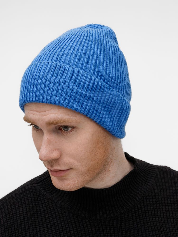 Удлиненный силуэт шапки Nobilis Mono из мягкой полушерстяной пряжи с широким отворотом создает стильный современный образ, а фактурная вязка добавляет объем и выразительность.