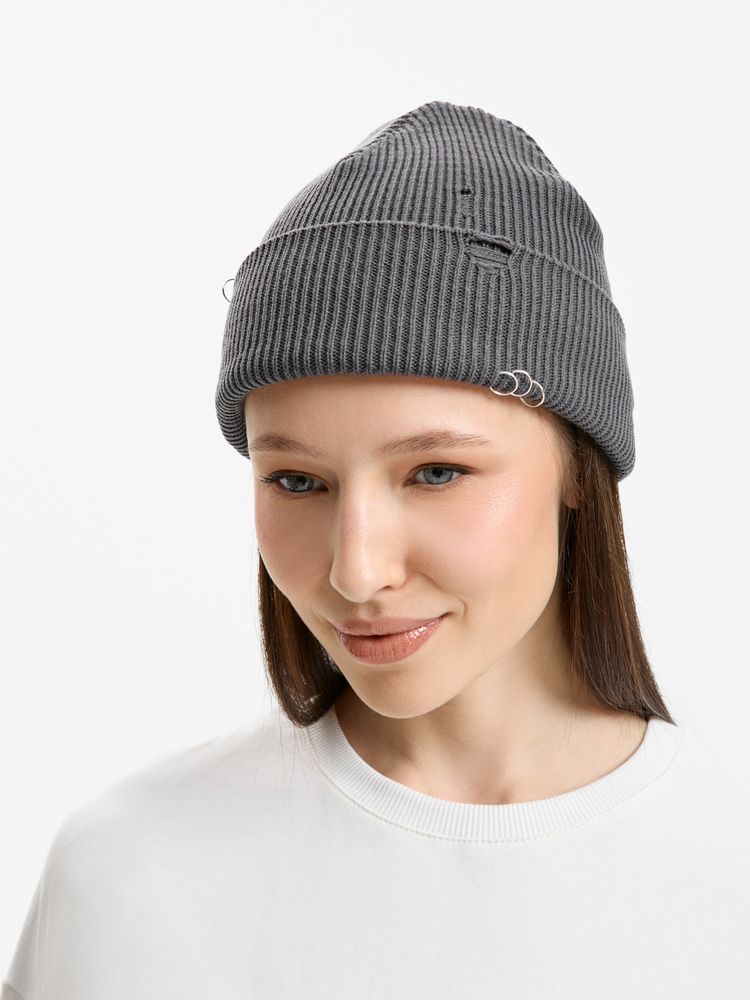 Шапка Ribelle — это практичная двухслойная модель из акрила, которая сочетает уют с современным дизайном. Ее регулируемый отворот с рваным краем и металлическими кольцами в качестве украшений создает выразительный и необычный акцент. Благодаря универсальности и продуманной конструкции она станет стильным и функциональным дополнением гардероба.