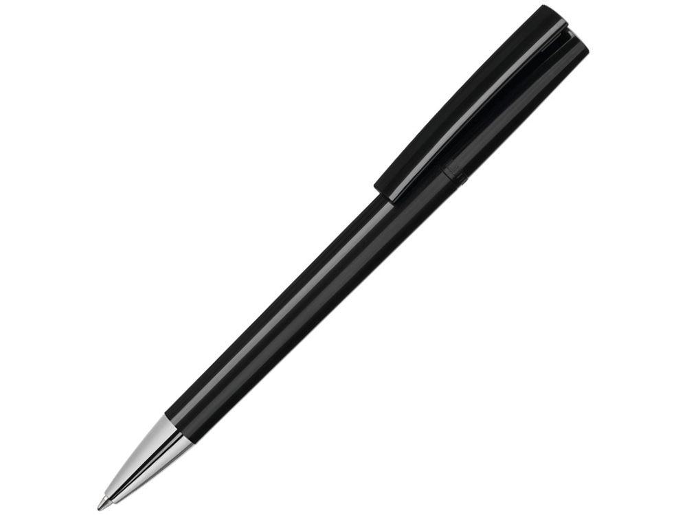 Шариковая ручка с поворотным механизмом, белым или черным глянцевым тонированным корпусом, серебристой заглушкой в верхней части и тяжелым металлическим наконечником с глянцевой хромированной отделкой