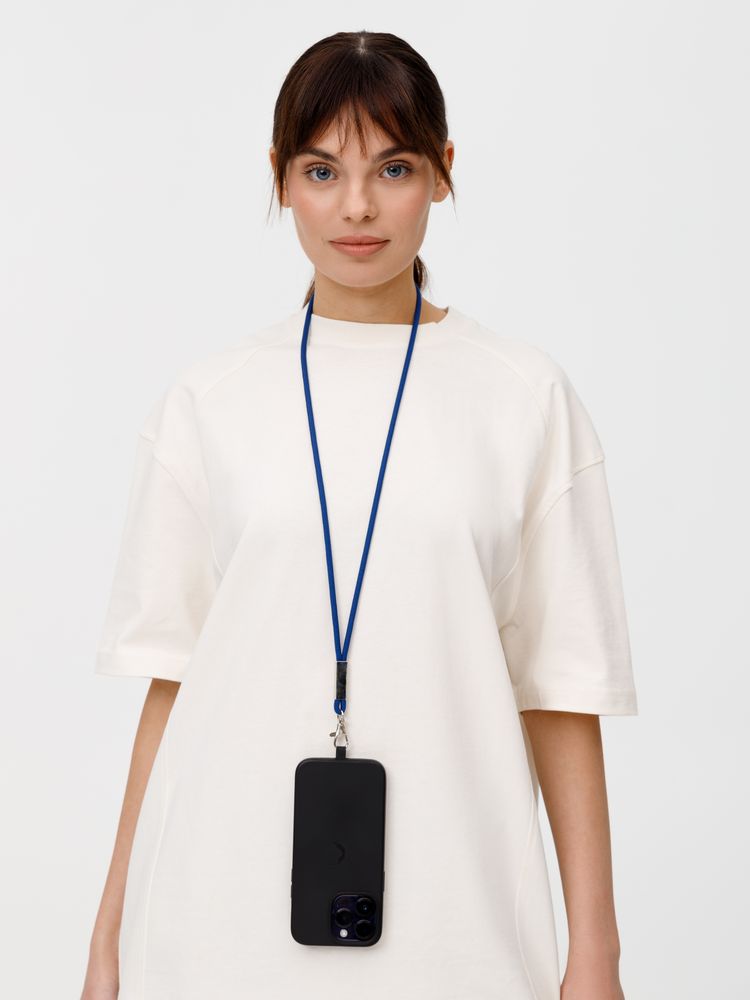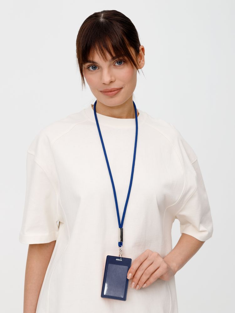 Шнурок для бейджа Tube Metal, синий купить оптом и в розницу с нанесением логотипа в Санкт-Петербурге