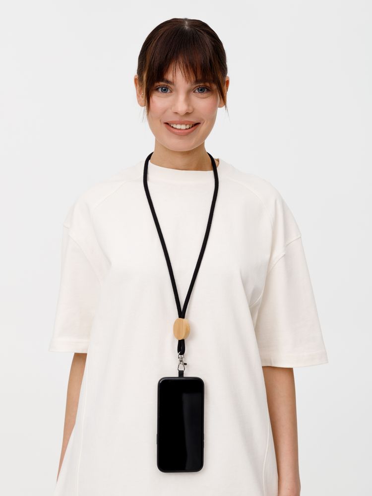 Шнурок для бейджа Tube Wood, черный купить оптом и в розницу с нанесением логотипа в Санкт-Петербурге