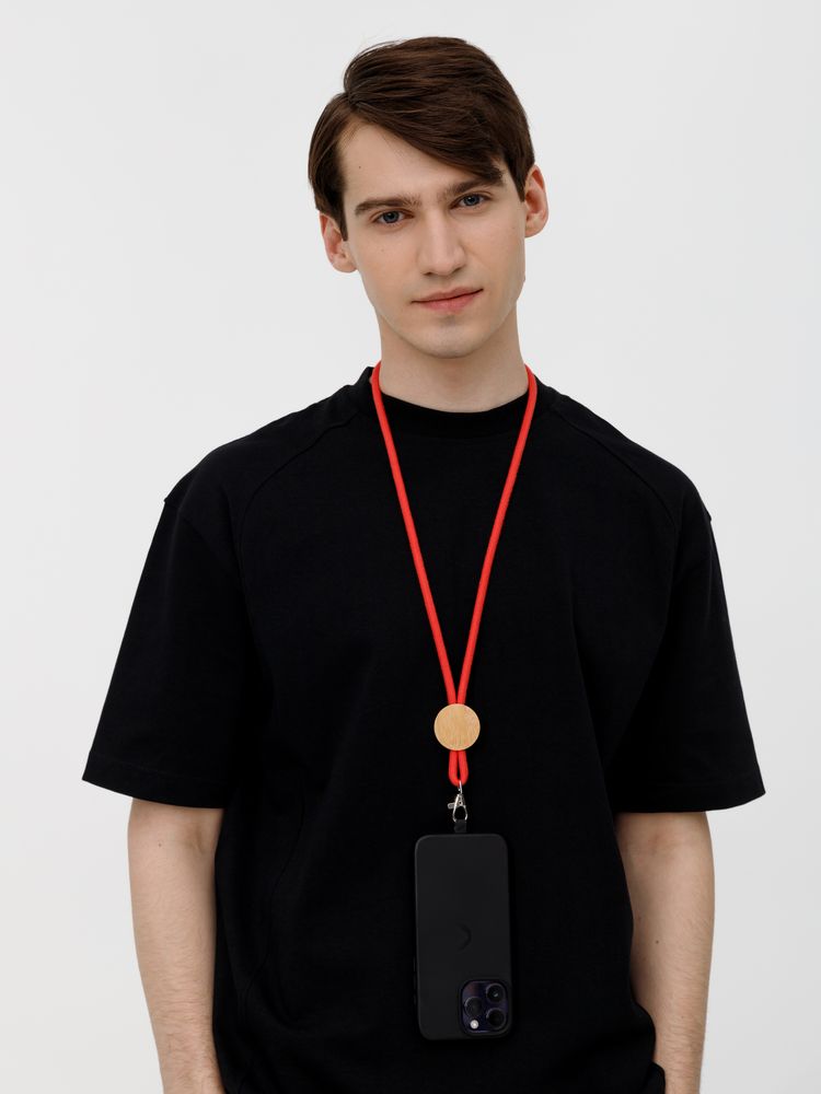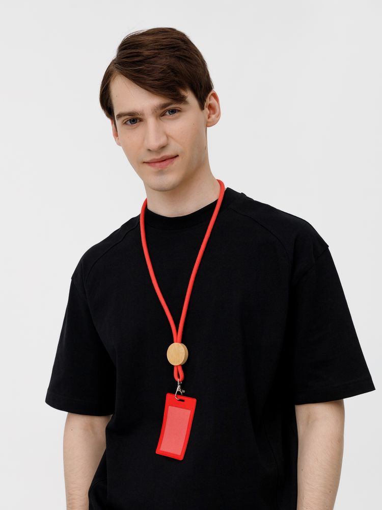 Шнурок для бейджа Tube Wood, красный купить оптом и в розницу с нанесением логотипа в Санкт-Петербурге