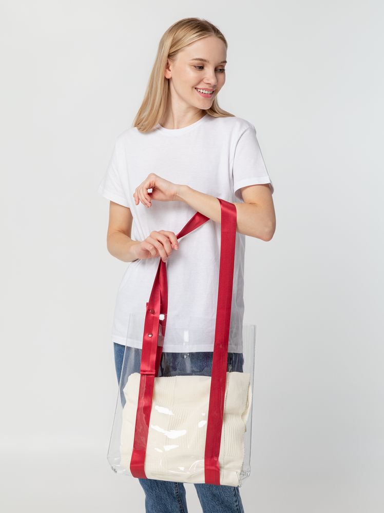 Шопер Clear Fest, прозрачный с красными ручками купить оптом и в розницу с нанесением логотипа в Санкт-Петербурге