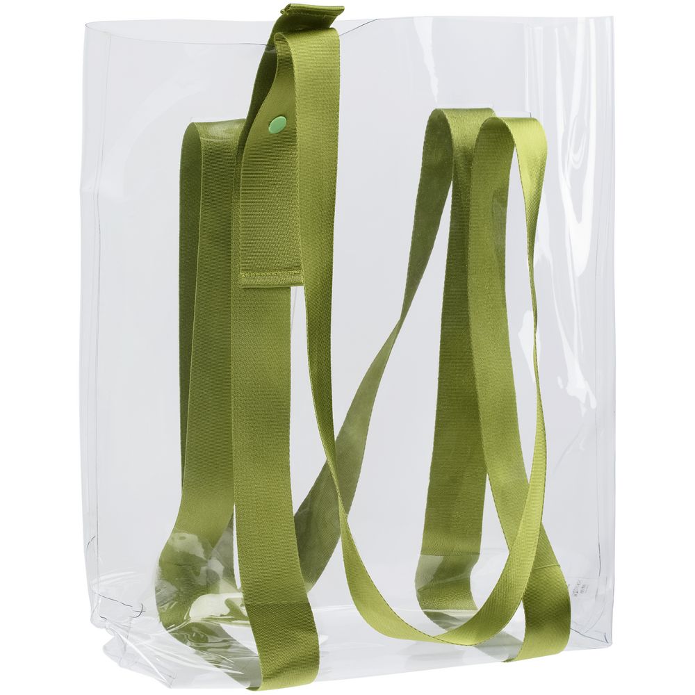 Шопер Clear Fest, прозрачный с зелеными ручками купить оптом и в розницу с нанесением логотипа в Санкт-Петербурге