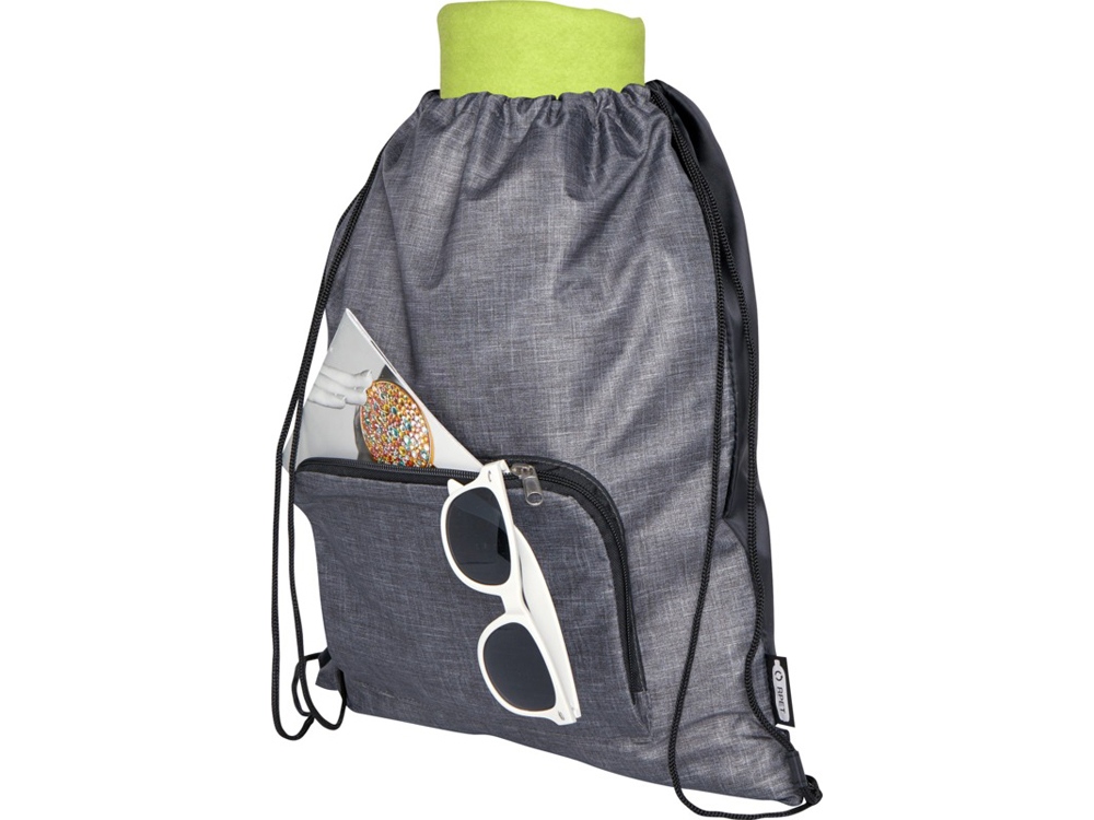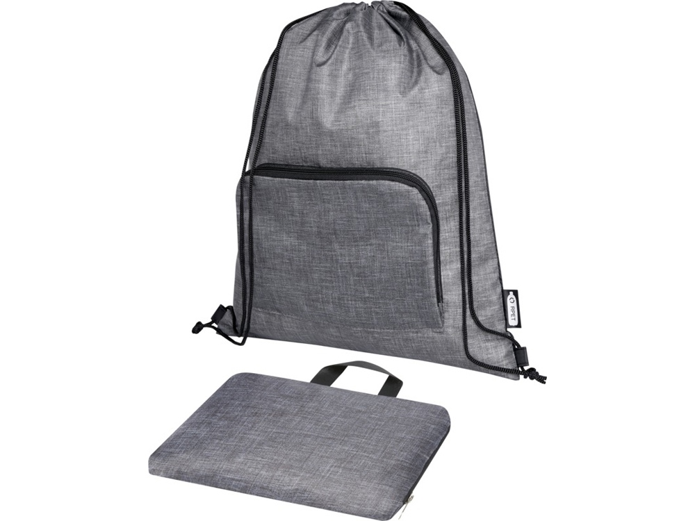 Складная сумка со шнурком Ash из переработанных материалов, соответствующих стандарту GRS, имеет главное отделение с затягивающейся застежкой и передний карман на молнии, в который можно с легкостью сложить сумку для удобности перевозки и хранения.