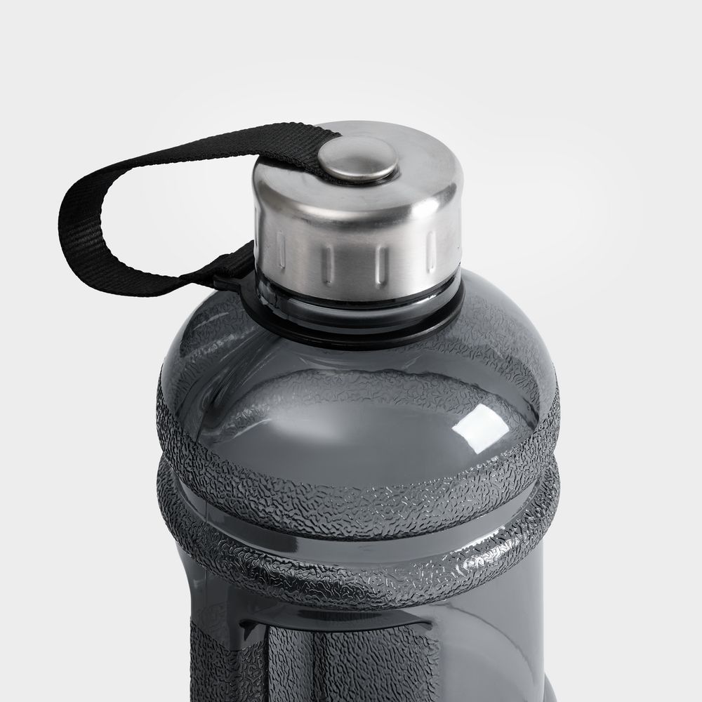 Большая ручка помогает удобно удерживать бутылку или быстро подхватывать ее во время тренировки. Крышка с уплотнительным кольцом, препятствующим протеканию жидкости, скреплена с корпусом ремешком — так она не потеряется в процессе использования. Полупрозрачный цветной корпус выполнен из пищевого пластика, гигиенически и экологически безопасного.