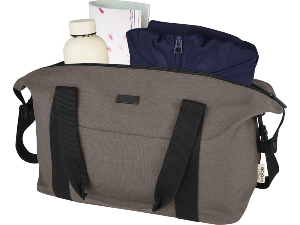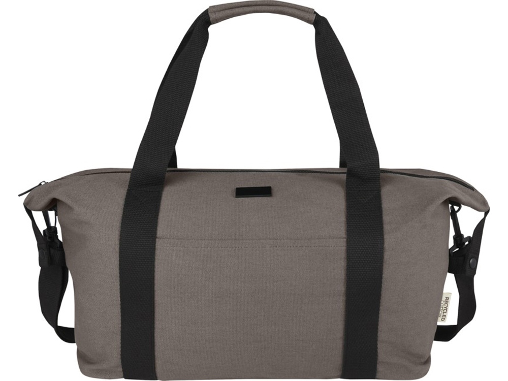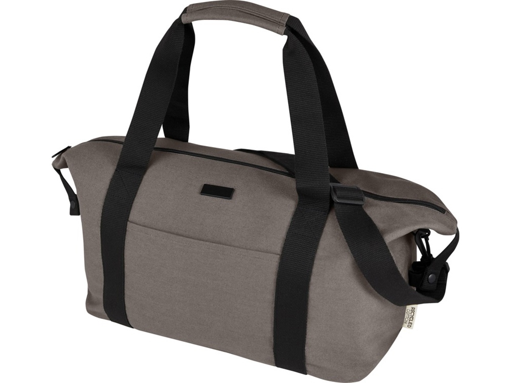 Изготовленная из высокопрочных экологичных материалов, брезента и подкладки из переработанного ПЭТ, соответствующих стандарту GRS, спортивная сумка Joey объемом 25 л имеет просторное главное отделение на молнии и внутренний карман на молнии для безопасного хранения. Сумка также имеет 1 открытый передний карман и еще один задний карман на ремне с застежкой на молнии для тележки, и может переноситься как с помощью усиленных вязаных ручек, так и с помощью отсоединяемого регулируемого ремня на плечо. Декоративная металлическая пластина может придать логотипу сияние благодаря утонченному матовому покрытию.