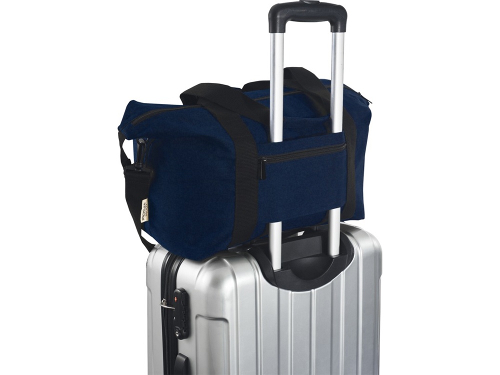 Изготовленная из высокопрочных экологичных материалов, брезента и подкладки из переработанного ПЭТ, соответствующих стандарту GRS, спортивная сумка Joey объемом 25 л имеет просторное главное отделение на молнии и внутренний карман на молнии для безопасного хранения. Сумка также имеет 1 открытый передний карман и еще один задний карман на ремне с застежкой на молнии для тележки, и может переноситься как с помощью усиленных вязаных ручек, так и с помощью отсоединяемого регулируемого ремня на плечо. Декоративная металлическая пластина может придать логотипу сияние благодаря утонченному матовому покрытию.
