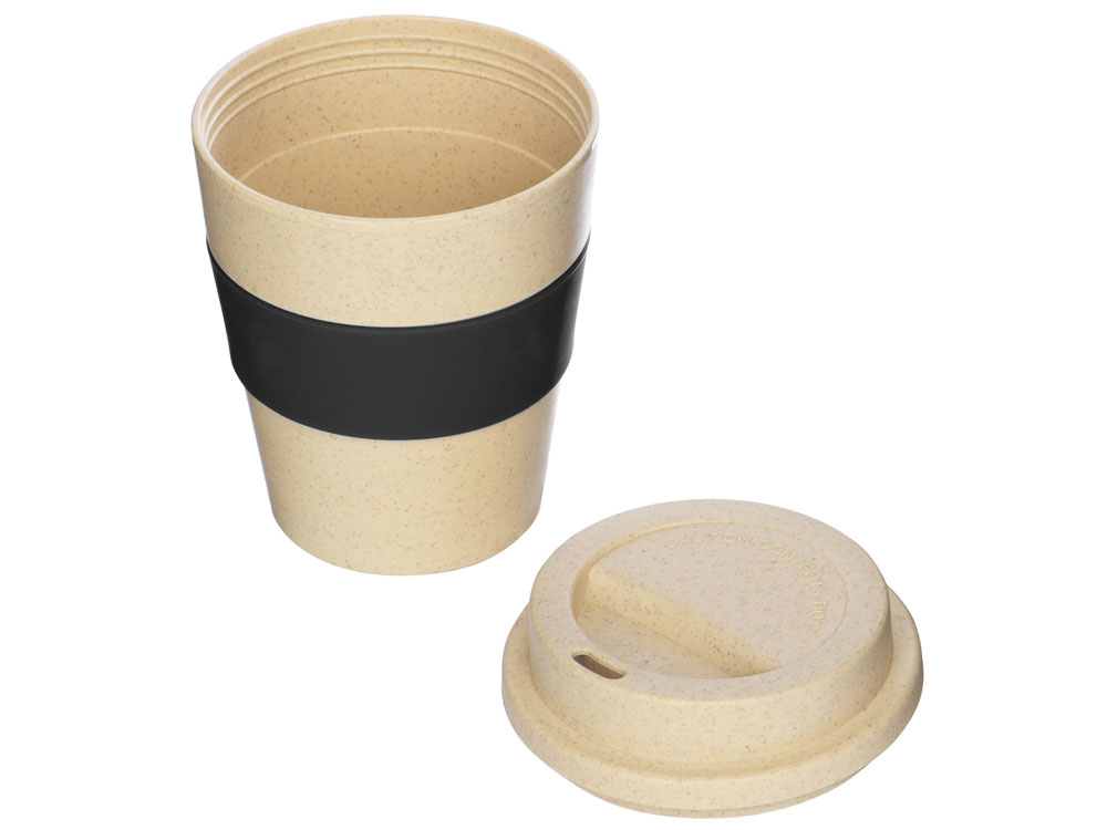 Многоразовый стакан Madrid - классный подарок на рынке промо-сувениров! Он легкий, крепкий и отчасти экологичный, так как пластик в его составе наполовину перемешан с пшенично-соломенным волокном. - манжета в контрастном цвете, спасающая руки от обжигания - стакан не большой высоты, что дает ему шансы подойти под большую часть кофемашин - максимально допустимая температура напитка в стакане - 100°C - не разрешается использовать в посудомоечной машине и СВЧ.