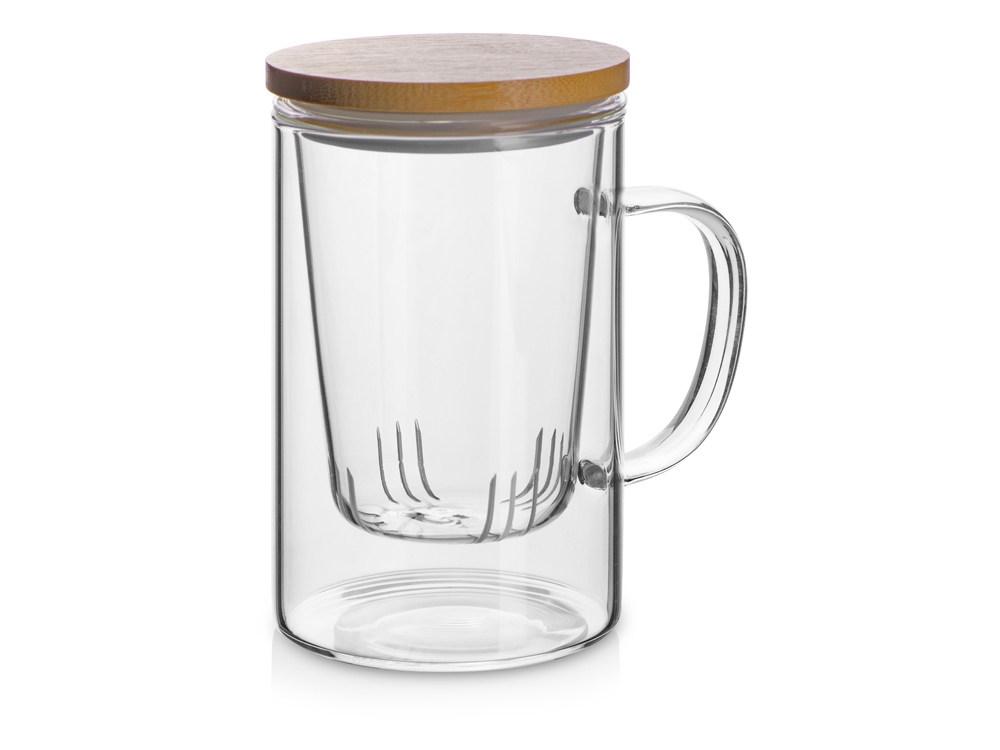 Элегантная стеклянная кружка объемом 400 мл с фильтром для заваривания чая или травяных сборов – идеальное решение не только для дома, но и для офиса. Оснащена удобной ручкой, которая не нагревается от высоких температур, обеспечивая комфортное использование. В комплекте идет стеклянный фильтр и бамбуковая крышка со стальной прослойкой, предотвращающей набухание и трещины. Данная кружка не подходит для мытья в посудомоечной машине.