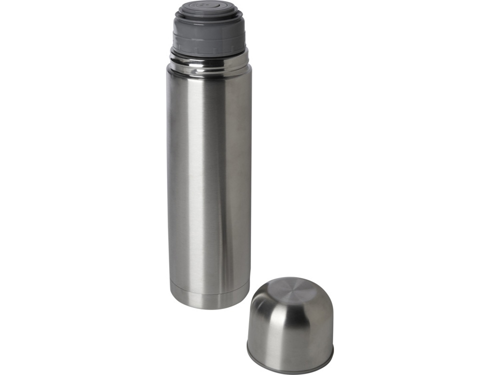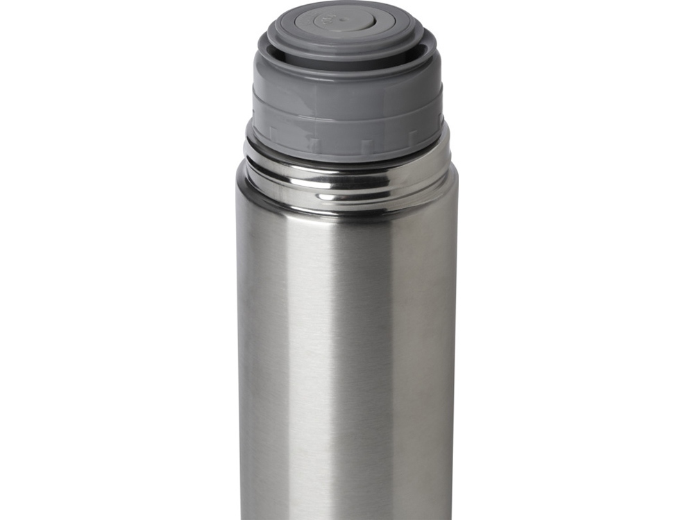Изолированная колба с двойными стенками и крышкой, сертифицированная RCS. Кнопочный носик, управляемый одной рукой, который автоматически закрывается при привинчивании крышки-чашки к бутылке. Объем 750 мл. Recycled stainless steel.