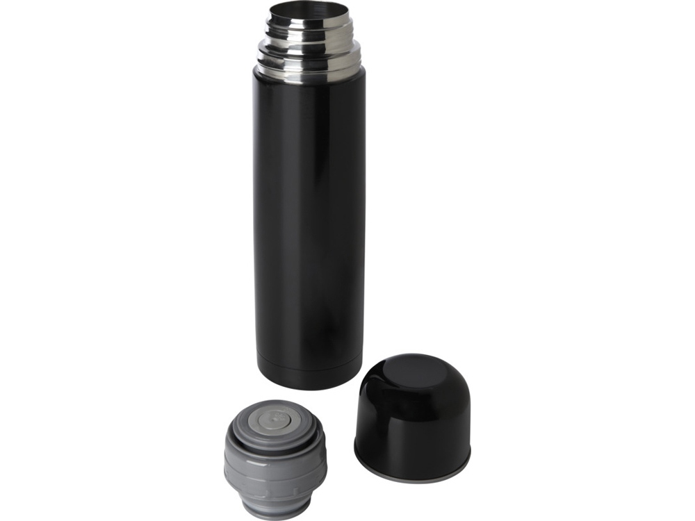 Изолированная колба с двойными стенками и крышкой, сертифицированная RCS. Кнопочный носик, управляемый одной рукой, который автоматически закрывается при привинчивании крышки-чашки к бутылке. Объем 750 мл. Recycled stainless steel.